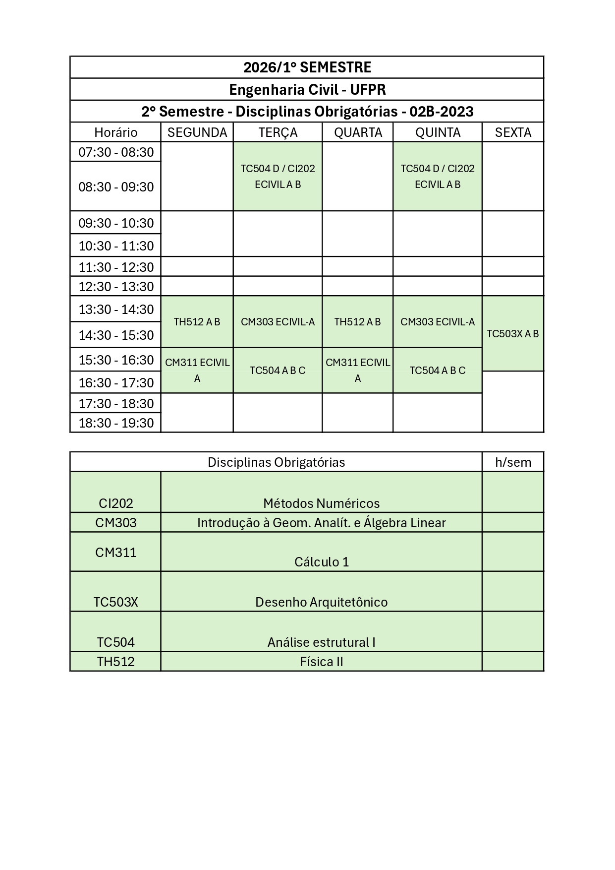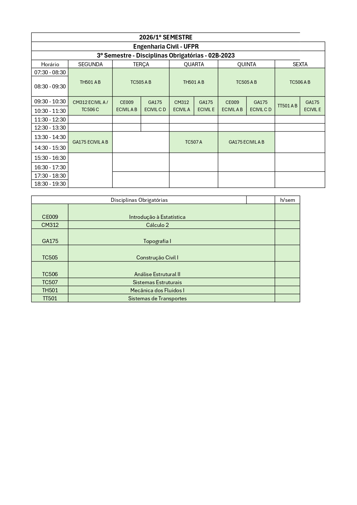 GRADE DE OFERTA DE DISCIPLINAS 2026/1